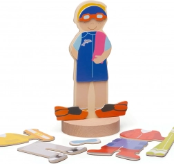 Det magnetiske påklædningspuslespil giver børn både leg og læring i ét. Med syv sportskombinationer kan små skabere mikse og matche tøj, skabe unikke outfits og fortælle historier om deres helte. Den solide æske med magnetlåg holder alle dele samlet – ideel til rejser og børneværelset.