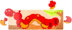 Tællepuslespillet larve BIGJIGS TOYS forbinder læring med leg. Børn lægger de nummererede brikker 1–10 på træpladen med sorte prikker, som svarer til tallet på brikken. Derved styrker de forståelsen af mængder, farver og former, samtidig med at hånd–øje-koordinationen trænes.