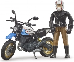 Bruders BWORLD-serie bringer en autentisk køreoplevelse. Motorcyklen Scrambler DUCATI Cafe Racer imponerer med realistiske detaljer, fra motordesignet til de gyldne fælge, og rytteren med fuldt bevægelige led muliggør dynamiske positurer og actionfyldte scenarier. Den robuste konstruktion sikrer lang levetid og sikker underholdning.