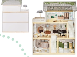 Sikkerhed og æstetik er vores prioritet. Alle dele af dukkehuset er omhyggeligt forarbejdet med glatte kanter og indbydende farver, hvilket gør det til en sikker og smuk dekoration til børneværelset.