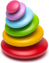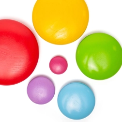 Stenene er lavet af solidt træ og farvet med ikke‑giftige farver. Den glatte overflade er behagelig at holde ved og ideel til små hænder fra 18 måneder. Efter legen kan de også fungere som en munter dekoration på børneværelset.