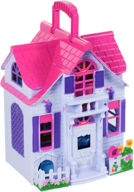 Dukkehusets håndtag gør det nemt at transportere, ideelt til leg på farten.