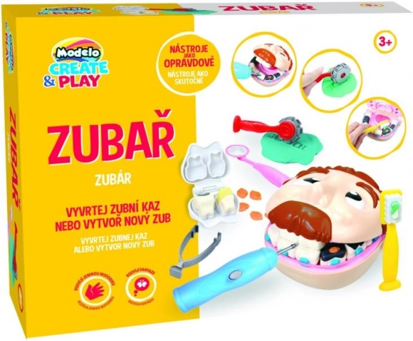 Forvandl børn til små tandlæger med det kreative Modelo-sæt. Form tænder, bor hul, sæt bøjle på og lav fyldning – alt med en letformelig modellervoks, som ikke smitter af og ikke tørrer ud. Legen udvikler finmotorik, kreativitet og hjælper med at fjerne tandlægeskræk.