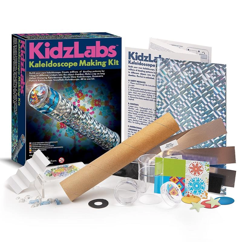 Byg din egen kalejdoskop og se, hvordan uendelige kombinationer af farver og former drejer for øjnene af dig. KidzLabs-sættet er ideelt til små opdagere – det er let at samle, resultatet er iøjnefaldende, og sjoven stopper aldrig.