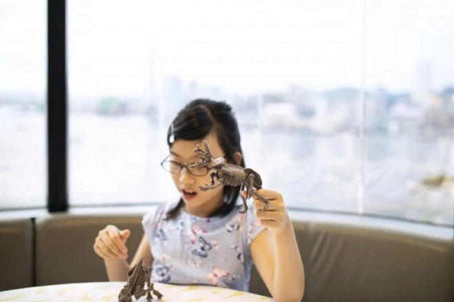 Efter at have gravet delene fri samler børnene en detaljeret plastikmodel af en mammut – et fremragende lærings- og dekorationsstykke.