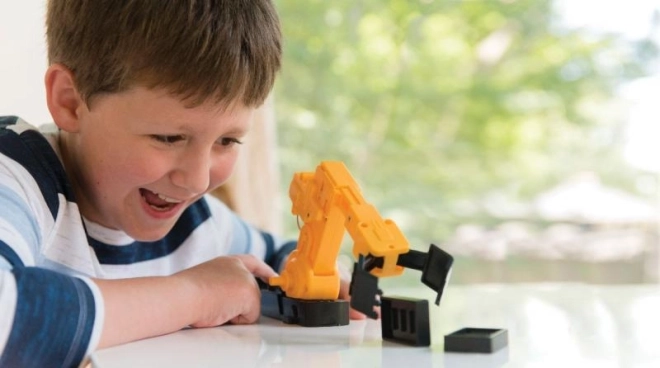 Den motoriserede mekanisme efterligner troværdigt bevægelsen fra industrielle robotarme og er ideel til de første skridt i mekanik og elektroteknik. Byggesættet understøtter projektbaseret læring og formidler principperne for STEM/STEAM på en underholdende måde.