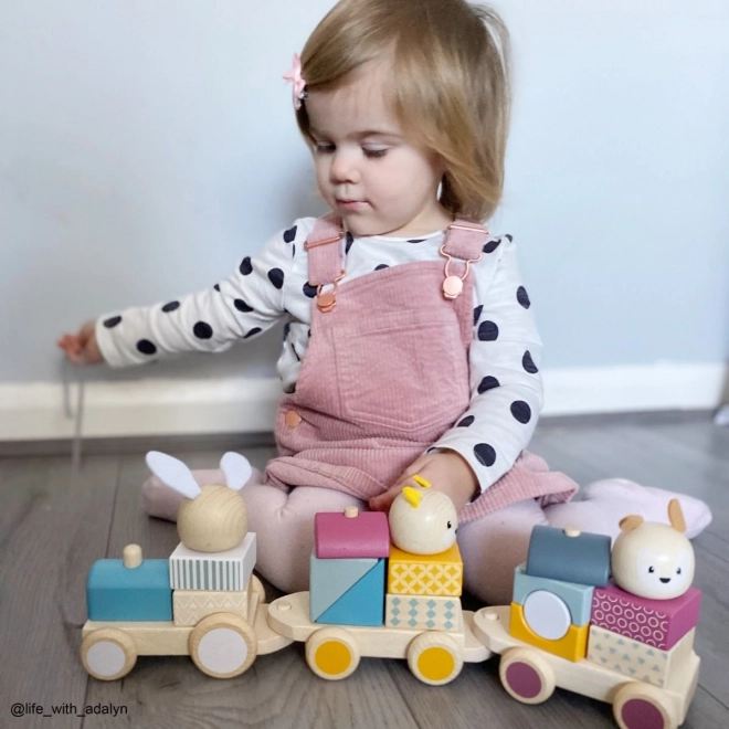 Toget underholder børn både som træklegetøj og som stabel-/puttelegetøj og puslespil. Forskellige kombinationer af klodser støtter fantasi, tålmodighed og koordination.