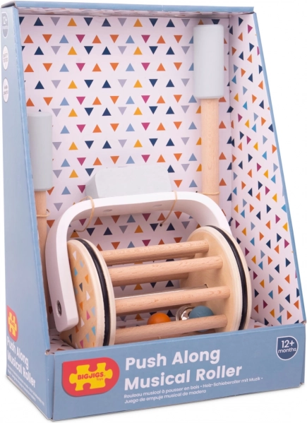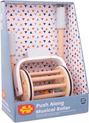 Smukt forarbejdet musikrulle lavet af 100% FSC® træ støtter ikke kun motorik, men også dit barns sansefærdigheder. På grund af dens bevægelse og lyden fra klokken, der svajer mellem trælister, udvikler dit barn sine høreevner. Legetøjet består af en kombination af naturligt og farvet træ, hvor farverne stimulerer synssansen.