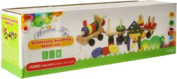 Dette kvalitets trætog kombinerer leg og læring i ét. Med de farvede klodser og stabling på pinde udvikler børn finmotorik, hånd–øje-koordination og kreativitet. Legetøjet hjælper samtidig med genkendelse af former og farver og understøtter tålmodighed og logisk tænkning.