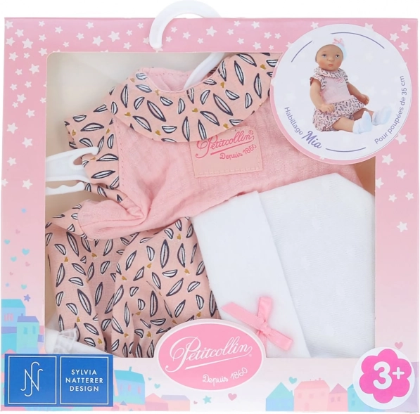 Mia-tøj fra Petitcollins Bibichou kollektion er det perfekte valg til din dukke. Det består af en løs pink dragt med smukt print, suppleret med hvide strømper og en hvid hue. Hvert stykke fra Petitcollin er kendetegnet ved omhyggelig udførelse og fremstilles i ånden af fransk elegance.