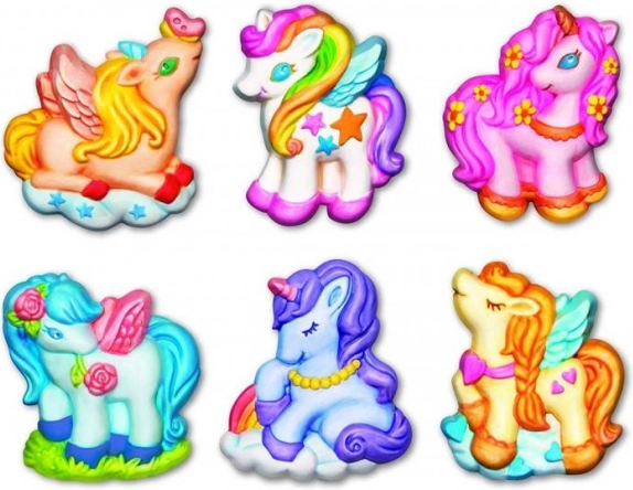 I dette kreative sæt kan du forme og male gipsafstøbninger. Produktet indeholder alt, hvad der er nødvendigt for at fremstille magneter eller brocher formet som enhjørninge.