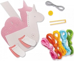 Med dette kreative sæt kan børn nemt sy deres egen enhjørninge-pung af et slidstærkt tekstilmateriale, der minder om kunstlæder. Delene er forstansede for nem gennemføring af tråd, så børn sikkert tilegner sig grundlæggende syningsteknikker og til sidst får et praktisk tilbehør til småting.