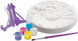 Sættet indeholder en terracottadisk med fe-relief, 6 farver, pensel og holder. Åbn og skab – uden at købe ekstra tilbehør.