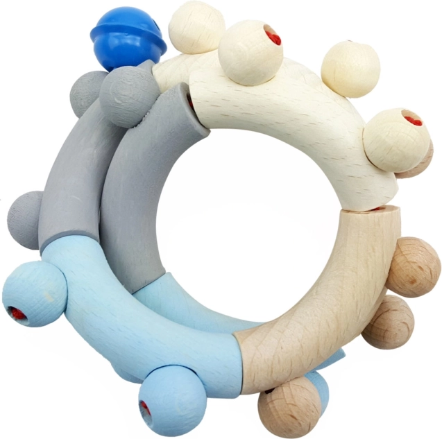 Hess Blå Motorisk Rangle er det perfekte legetøj til små børn, som træner finmotorikken på en legende måde. Takket være træ af høj kvalitet og miljøvenlige farver er ranglen sikker for børn. For langvarig brug anbefales det kun at rengøre ranglen med en fugtig klud og undgå kontakt med for store mængder vand.