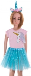 Dette magiske kostume lyser op til enhver fest og vækker børns fantasi. Tylskørtet i ballerina-stil er let, glansfuldt og tilpasser sig nemt takket være den elastiske talje. Hårbøjlen er pyntet med en blød horn og glitrende ører – det perfekte tilbehør til en lille fe eller heks.