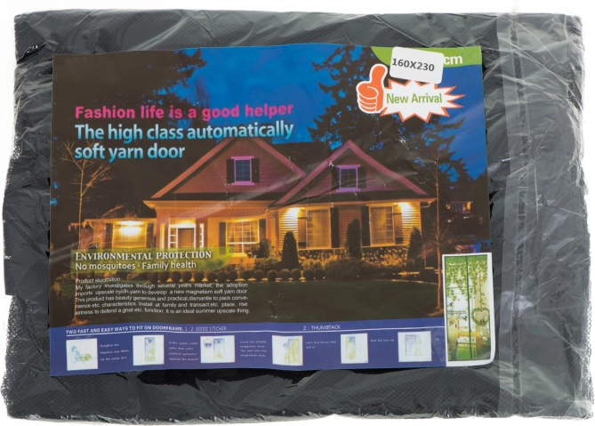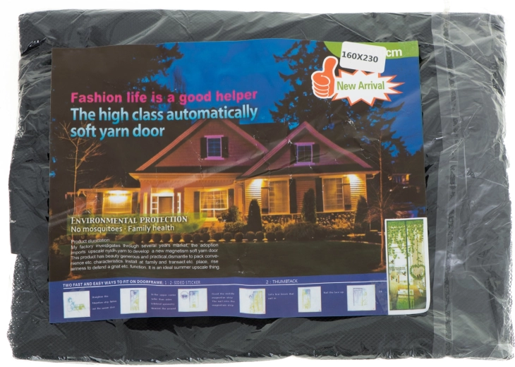 Pakket inde er tegnestifter til hurtig fastgørelse på dørkarmen. Nettet kan håndvaskes ved 30 °C og er let at opbevare uden for sæsonen.