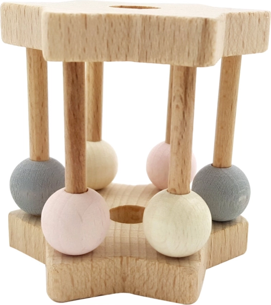 Moderne træ-rangle formet som en lyserød stjerne er det ideelle legetøj til at styrke dit barns motoriske evner. Den er fremstillet af kvalitets bøgetræ, hvilket sikrer lang holdbarhed og sikkerhed.
