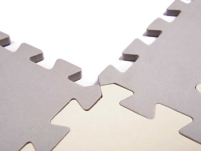 Blød børnemåtte af skumpuslespil med udtagelige former skaber et sikkert og kreativt legeområde. Takket være de forhøjede kanter kan du samle en legegård, som holder legetøjet indenfor. Måtten er vandafvisende, har en skridsikker overflade og dæmper stød perfekt, så den er ideel til de første skridt. Den neutrale grå og ecru farve passer ind i enhver indretning.