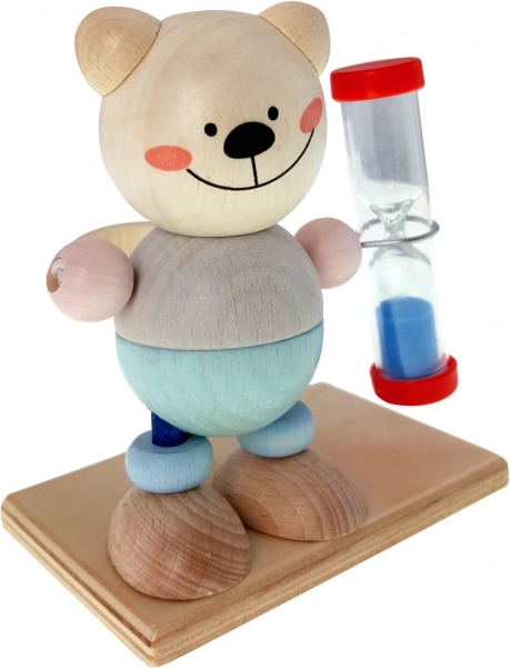 Bjørnetimeglasset gør tandbørstning til en sjov rutine. Løbetiden er cirka 2 minutter, hvilket svarer til den anbefalede varighed for effektiv tandbørstning. Bag bjørnefiguren findes en integreret holder til tandbørsten, så alt det nødvendige altid er samlet ét sted.