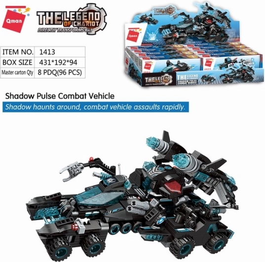 Qman Shadow Pulse byggesættet tilbyder muligheden for kreativ konstruktion med 714 dele. Hver af de 8 byggesæt kan være en selvstændig model, eller de kan tilsluttes de andre for at skabe et stort kampkøretøj. Dette byggesæt, fremstillet af høj kvalitet og holdbar ABS-plast, er kompatibelt med Lego, Sluban, Cobi og flere. Hver del af sættet er individuelt pakket i farverige kasser, hvilket giver nemhed ved opbevaring og organisering.