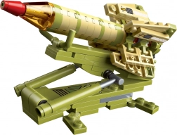 Sættet indeholder 629 stykker, der giver mulighed for at samle 8 forskellige militærmodeller og kombinere dem til et større unikt design.