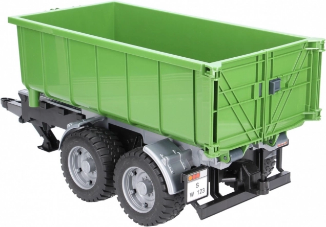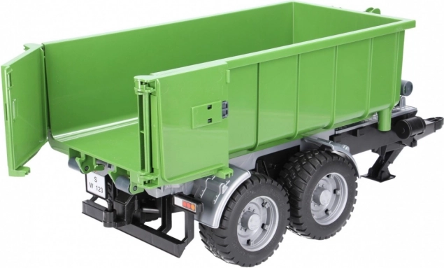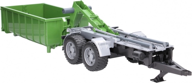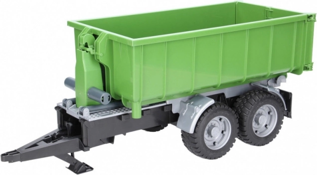 Denne realistiske BRUDER-trailer i grøn-sort udførelse udvider enhver traktor med en alsidig container. Takket være tipmekanismen og den åbnbarE bagklap klarer den nem aflæsning af lasten, og containeren kan desuden tages af chassiset og bruges separat.