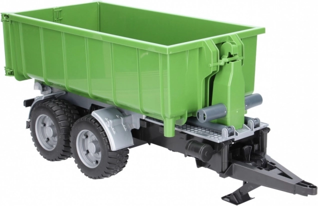 Det ideelle tilbehør til små landmænd: Bruder grøn trailer med tipcontainer i skala 1:16 tilbyder tipning, åbnbar bagklap og aftagelig container. Robust ABS-plast, kompatibel med BRUDER-traktorer, fremstillet i Tyskland.