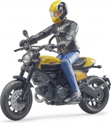 Denne detaljerede model af motorcyklen Scrambler DUCATI Cafe Racer fra BRUDER er ideel til både små motorcykelentusiaster og samlere. Den realistiske udførelse, fra synlige motordele til sædets form, suppleres af en fuldt bevægelig rytterfigur, der muliggør naturlige køre- og actionpositioner.