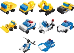 Dette sæt indeholder 10 forskellige modeller, herunder en leveringsbil, en gravemaskine, en patruljehelikopter og flere, hvilket sikrer uendelige muligheder for dine børn til at udvikle deres fantasi.