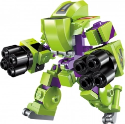 Byggesættet gør det muligt at skabe forskellige modeller, inklusive en stor pansret robot, og er kompatibelt med andre byggesæt.
