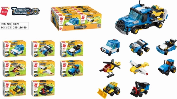 Det kreative Qman 8-i-1 byggesæt indeholder 329 klodser til at bygge forskellige køretøjer, som kan kombineres til en stor bugseringsvogn. Kompatibel med LEGO, Sluban, Cobi m.fl., fremstillet af holdbar ABS-plast og egnet til børn fra 6 år.