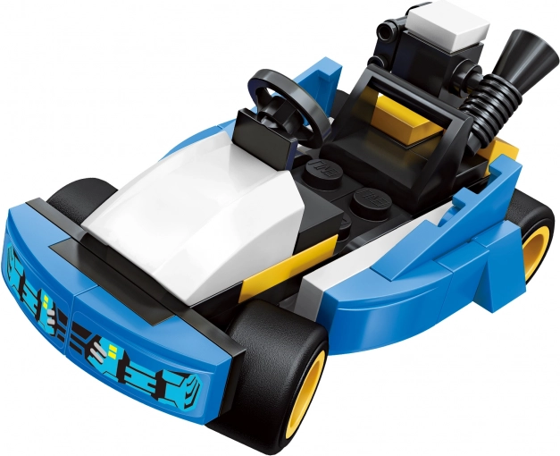 Byg en bil, offroader, racerbil, helikopter, fly, traktor, gravko og et lille tog – og opdag nye legescenarier hver dag.