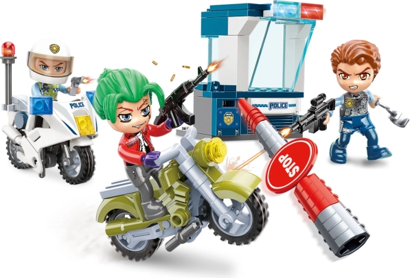 Sættet indeholder en actionfyldt scene med en politimotorcykel i jagten på en kriminel på motorcykel.