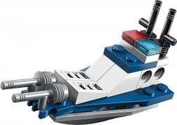 Nyd masser af sjov med et byggesæt, der inspirerer til både skabelse og ombygning. Af det kompakte sæt med 28 klodser bygger du tre forskellige modeller – fra en hurtig jolle til et eskortskib med detaljer som antenner og lys. Den lille pakkestørrelse er velegnet til rejser, og legen kan begynde hvor som helst.
