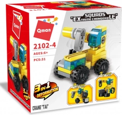 Oplev sjov med byggesættet QMAN Squads Extreme Changeable kran 3-i-1. Af 31 farverige klodser bygger du nemt en kran og to andre maskinvarianter, eller du kan skabe din egen konstruktion. Takket være kompatibiliteten med populære mærker kan sættet udvides og bruges til endnu større projekter.