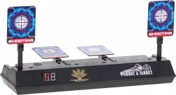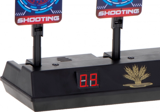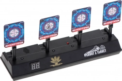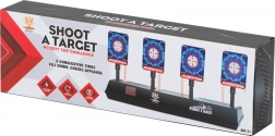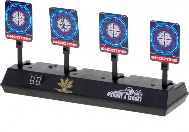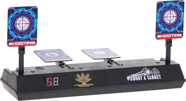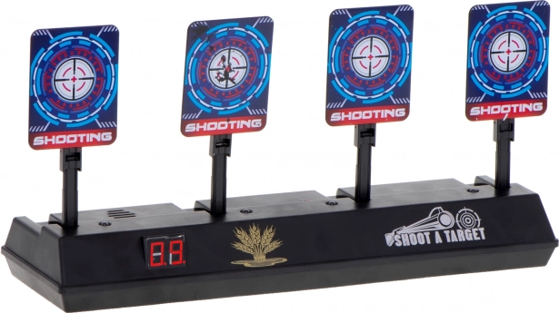 Forbedr din sigte med en elektronisk skydeskive med fire nedklappelige mål og et digitalt scoretæller. Ideel til legetøjspistoler med skumdartpile, og byder på lys- og lydeffekter for endnu mere sjov. Når alle fire mål rammes, rejser skiverne sig automatisk, så legen kan fortsætte.