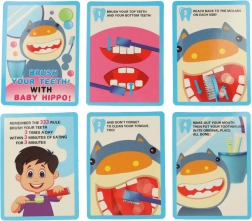 Farverige kort med trin til tandbørstning motiverer børn til regelmæssig og korrekt pleje af smilet.