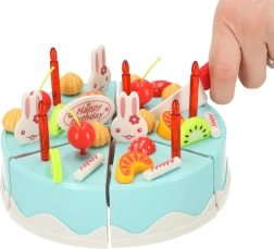 Dette farverige sæt med en blå fødselsdagskage er ideelt til fødselsdagsleg og legekøkken. Kagen består af 6 stykker forbundet med burrebånd, så børnene kan skære den med den medfølgende plastkniv, omarrangere den og pynte igen. Det rige tilbehør – fra lys og frugt til søde kaniner og skiltet 'Happy Birthday' – stimulerer kreativitet og udvikling af fantasi.