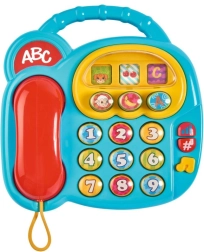 Den interaktive telefon til de mindste kombinerer leg og læring i ét. Med farverige knapper og realistiske lyde lærer børn tal, bogstaver, frugter og dyr at kende. Det drejelige “display” skifter billeder, hvilket stimulerer visuel opfattelse og sjov udforskning.