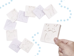 Fyld formen, dyp den i opløsningen med granulat, og se motivet blive fast på få øjeblikke og slippe formen.