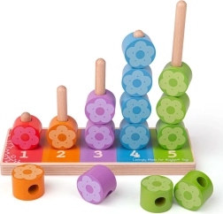 Hver søjle har sit tal og sin farve, så børn nemt forstår princippet om parring og antal. Blomsterdelene er lette at holde om for små hænder og motiverer til selvstændig leg såvel som fælles udforskning med forældre.