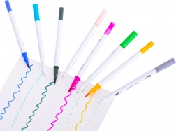 Fin liner 0,4 mm til præcise konturer og skrift, bredere spids 1–2 mm til hurtig farvelægning og markante strøg – alt i én marker.