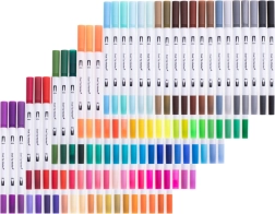 Oplev glæden ved at skabe med et sæt på 100 dobbelttippede tuscher, som tilbyder et komplet farvespektrum til hand lettering, skitsering, bullet journal, fremhævning og skoleprojekter. Hver marker kombinerer en præcis liner på 0,4 mm til konturer og tekst med en bredere spids på 1–2 mm til hurtig farvelægning.