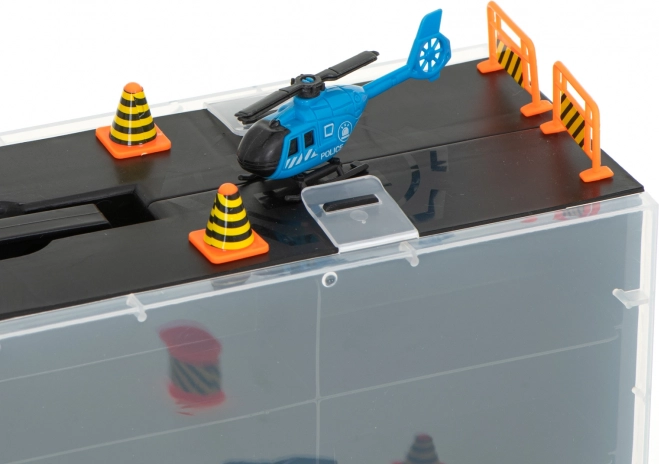 Inkluderer 6 metalpolitivogne, en helikopter og trafiktilbehør til realistiske scenarier.