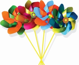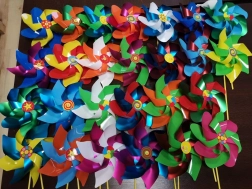 Vindmølle i forskellige farvekombinationer, sendes tilfældigt. Stor vindmølle (mix farver) til børns glæde, skaber et smil på ethvert barns ansigt. Velegnet til leg derhjemme samt som dekoration i haven eller i en blomsterkrukke. Forbedret, robust konstruktion for langvarig funktion. Akslen er udstyret med et ekstra rørformet hylster, som sikrer langvarig og jævn rotation i meget lang tid. Vindmøllen er fremstillet i EU. Den samlede længde med stang er 50 cm. Hovedegenskaber: samlet længde med stang 50 cm, velegnet som dekoration til hjemmet og haven.