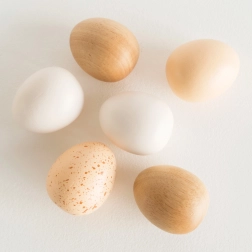 Oplev magien ved realistisk leg med trææg i kasse fra Honeybake-kollektionen. Seks omhyggeligt udformede æg af gummitræ i en robust trækasse er ideelle til små børnehænder og daglig leg. Kvalitetsmaterialer og sikre farver sikrer lang holdbarhed og hensyn til planeten.
