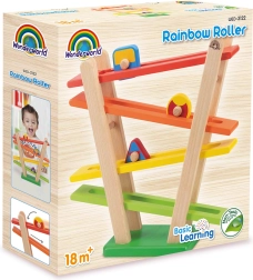 Wonderworlds træ regnbuebane kombinerer høj kvalitet med et indbydende design, der tiltaler både børn og forældre. Børnene leger ikke kun, men udvikler samtidig deres koncentration, færdigheder og finmotorik. De farverige former glider ned ad den skrå flade, hvilket stimulerer synet og fremmer bevægelseskoordination.