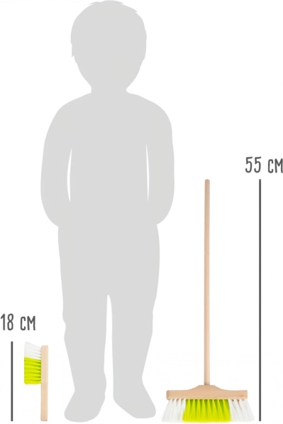 Kosten på 55 cm og håndkosten på 18 cm ligger perfekt i børnehænder, så de er nemme at bruge, og rengøring føles naturlig og sjov for børn.