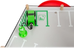 Børn kan tanke, lade elbilen og løfte bilen på rampen. Realistiske tilbehør stimulerer fantasien og lærer grundlæggende trafikal adfærd.