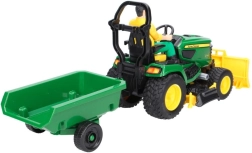 Udvid din legeverden med den detaljerede havetraktor JOHN DEERE X949 fra BRUDER. Med den funktionelle forplov, klippeaggregatet og tipvognen kan børn nemt efterligne rigtigt havearbejde – fra at skubbe blade til at 'slå' græs og køre materialer væk.
